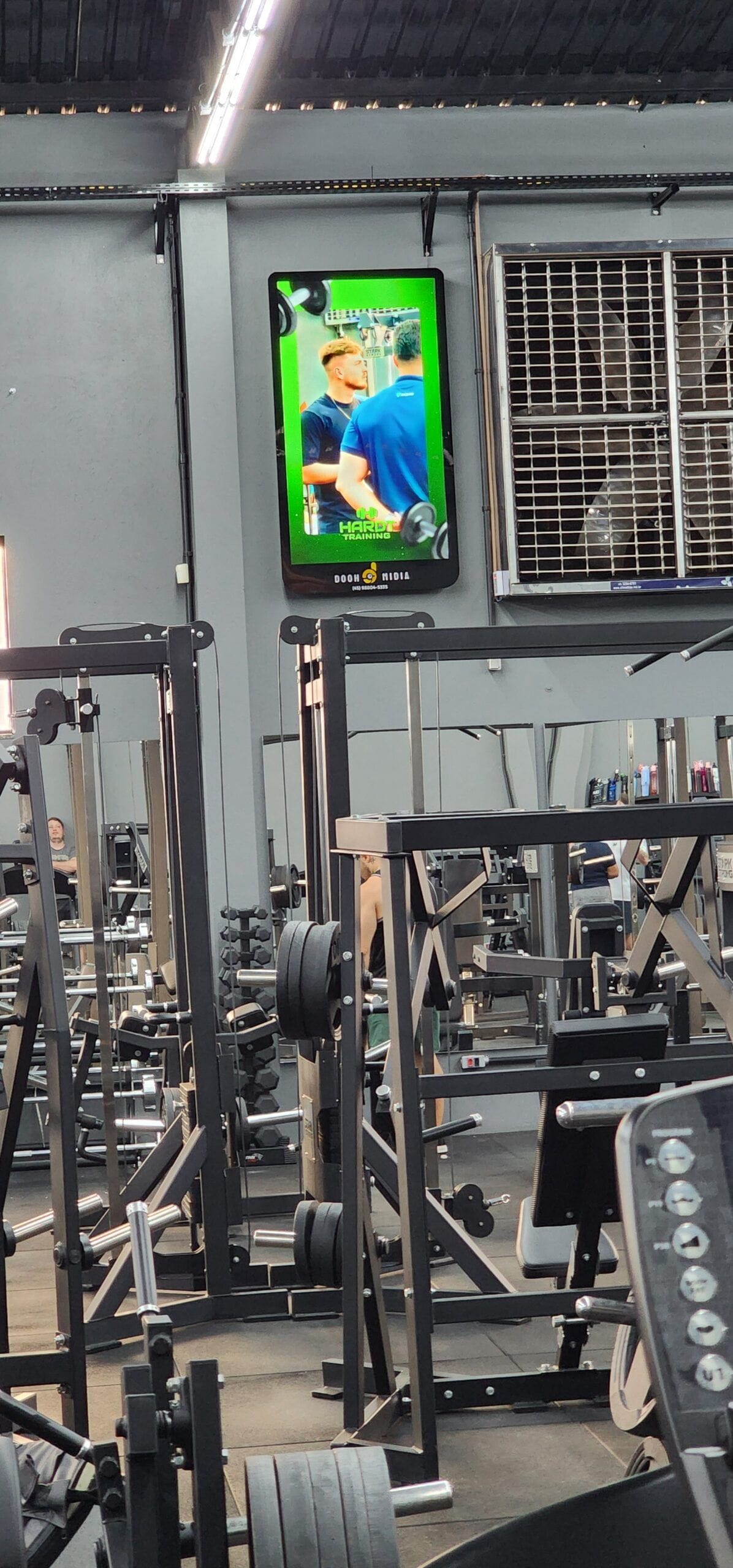 Exiba sua marca em telas estrategicamente posicionadas em academias, restaurantes e outros ambientes de alto fluxo.
